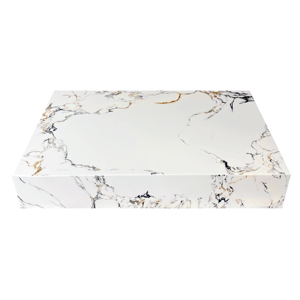Arezzo 600 x 400 x 100mm Iconic Stone Marble Floating Shelf Worktop in Matt White & Gold