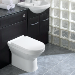 Short of space in your bathroom? the Arezzo Matt Green Two-In-One Wash Basin and Toilet offers a stylish solution. This innovative design consists of a toilet with a sink on top – all pipework is neatly concealed inside a sleek matt green unit with a polished chrome flush for a streamlined look. The built-in sink offers ample room for your chosen tap, while a practical soft close toilet seat shuts almost silently with a simple touch.