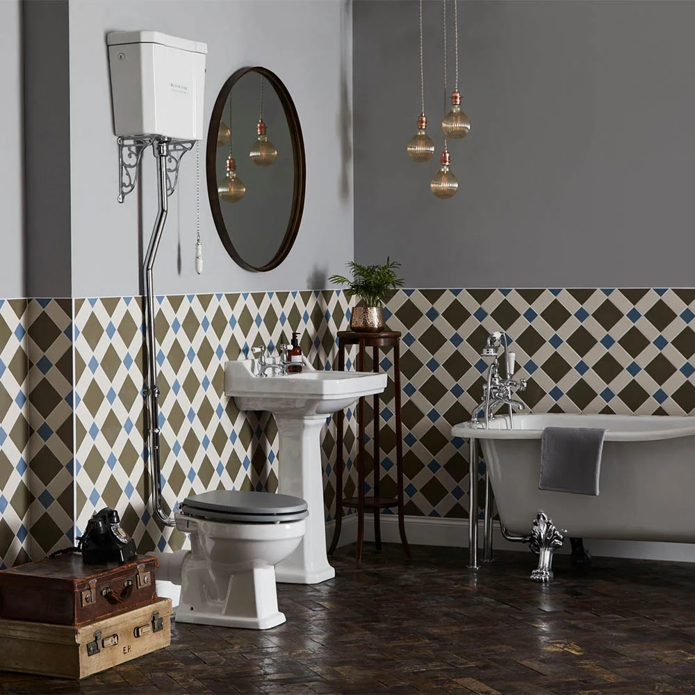 Inspired by classic Victorian and Edwardian designs, the Bayswater collection will bring elegance and style to your bathroom. This Fitzroy high level toilet is manufactured from high quality vitreous china for a durable finish and features an elegant ceramic handle pull chain, chrome high level flush pipe and ornate cistern brackets. Comes with a 5 year guarantee against manufacturing defects.
