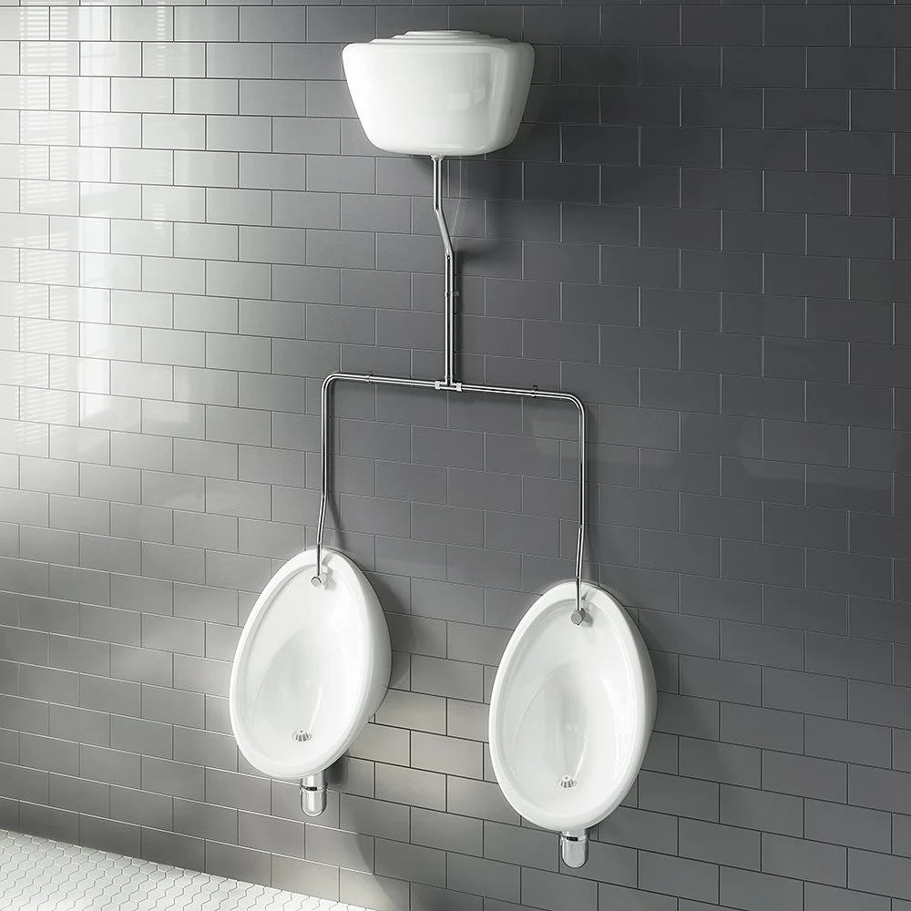 A wall mounted exposed exposed 9 litre ceramic cistern with fittings. This Cove auto flushing urinal cistern pack is the perfect choice for all commercial installations. For use with 2 urinals.