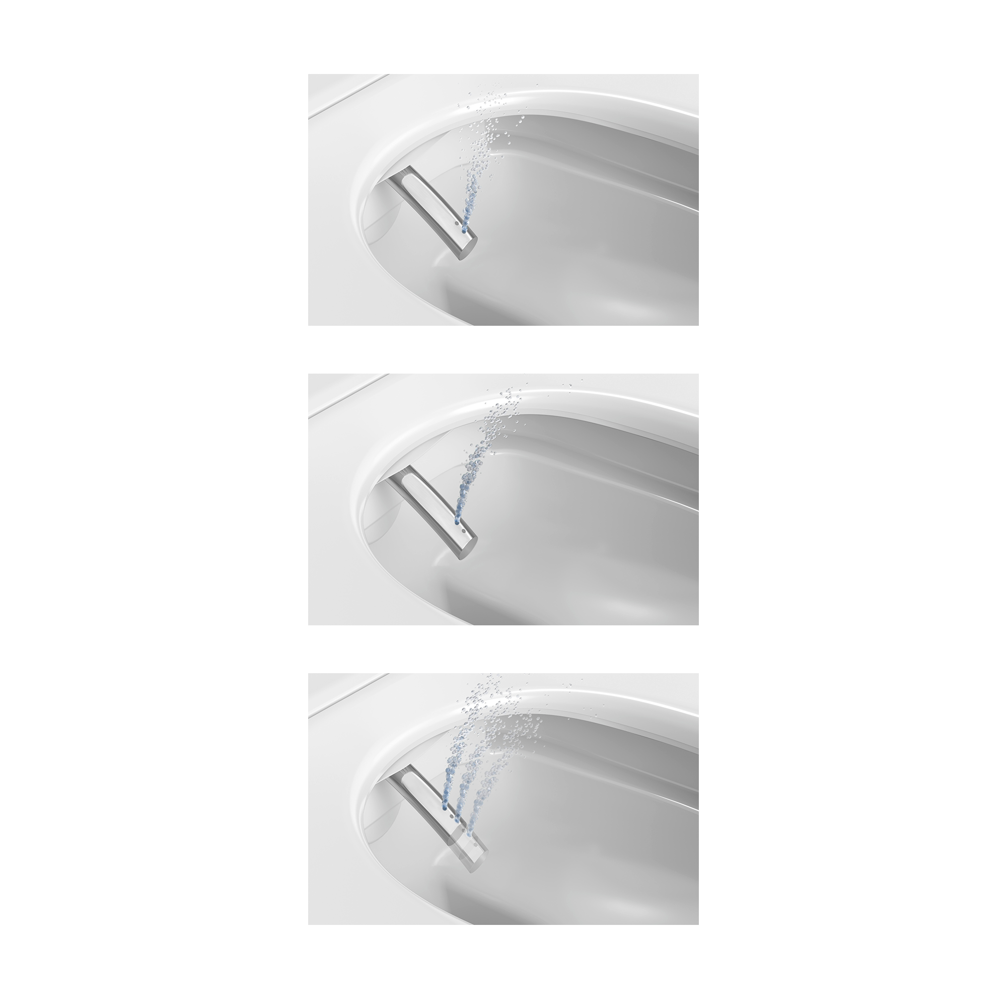 - Individual adjustment of water and seat temperature as well as spray wand position and water spray intensity