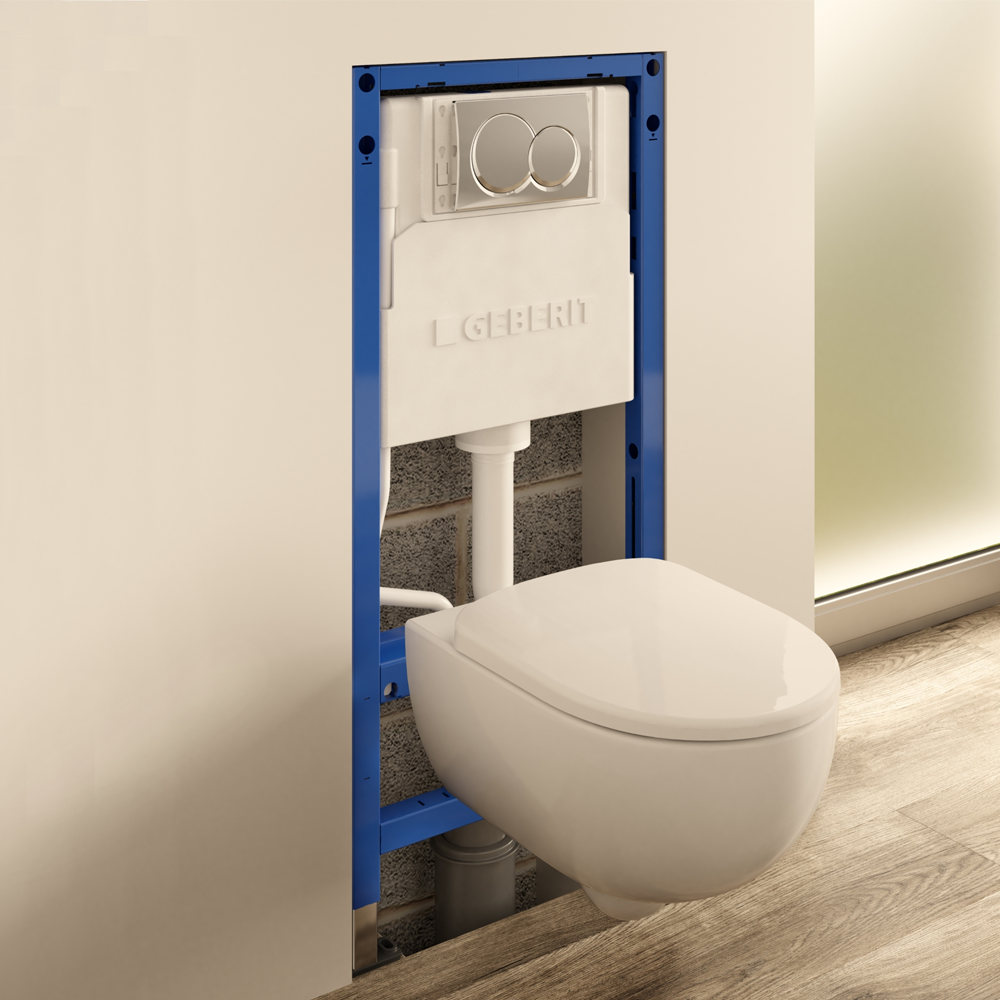 This Geberit wall hung WC bundle pack comprises of Geberit Duofix 112cm Frame with Alpha01 Chrome Flush Plate and Geberit Selnova Rimless Shrouded Wall-Hung Pan & Soft Close Quick Release Seat.Â