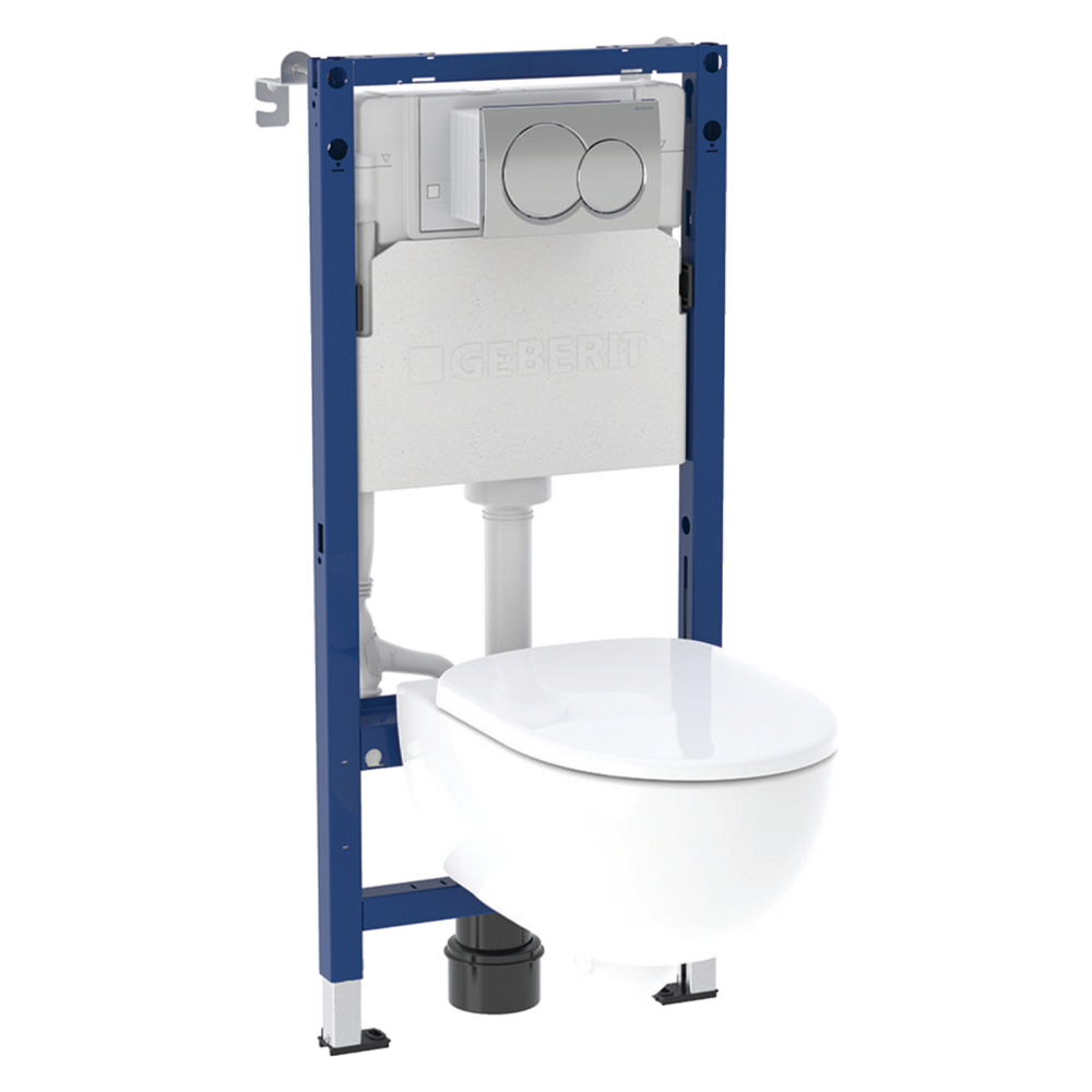 Geberit Rimless 4-in-1 Pack, Frame + Flush Plate + Pan & Soft Close Seat