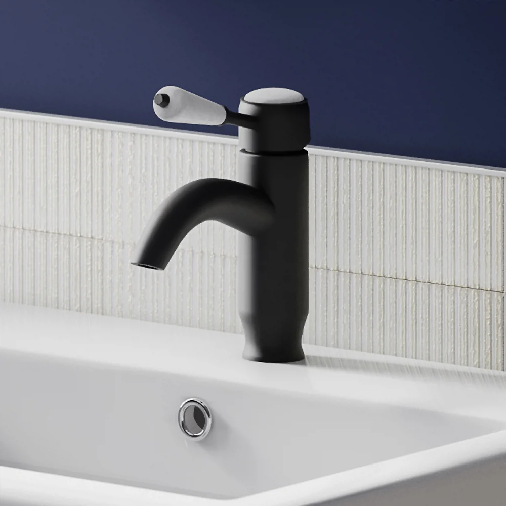 The eye-catching matt black Lancaster traditional mono basin mixer with curved spout, part of our range of traditional bathroom taps with its elegant spout design and expertly crafted white ceramic lever handle, it’s classic design will bring a touch of sophistication to your bathroom. Manufactured from solid brass with a stunning matt black finish. Single lever handle controls temperature and flow of water.