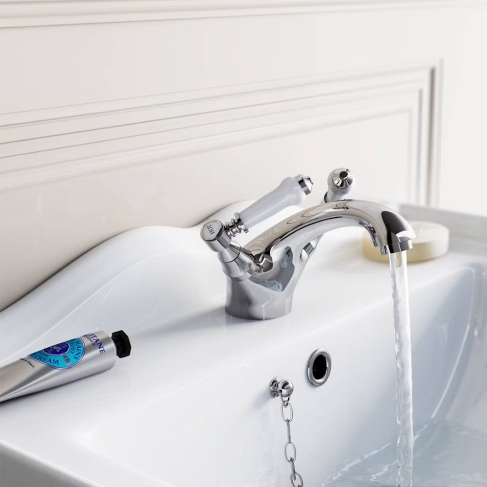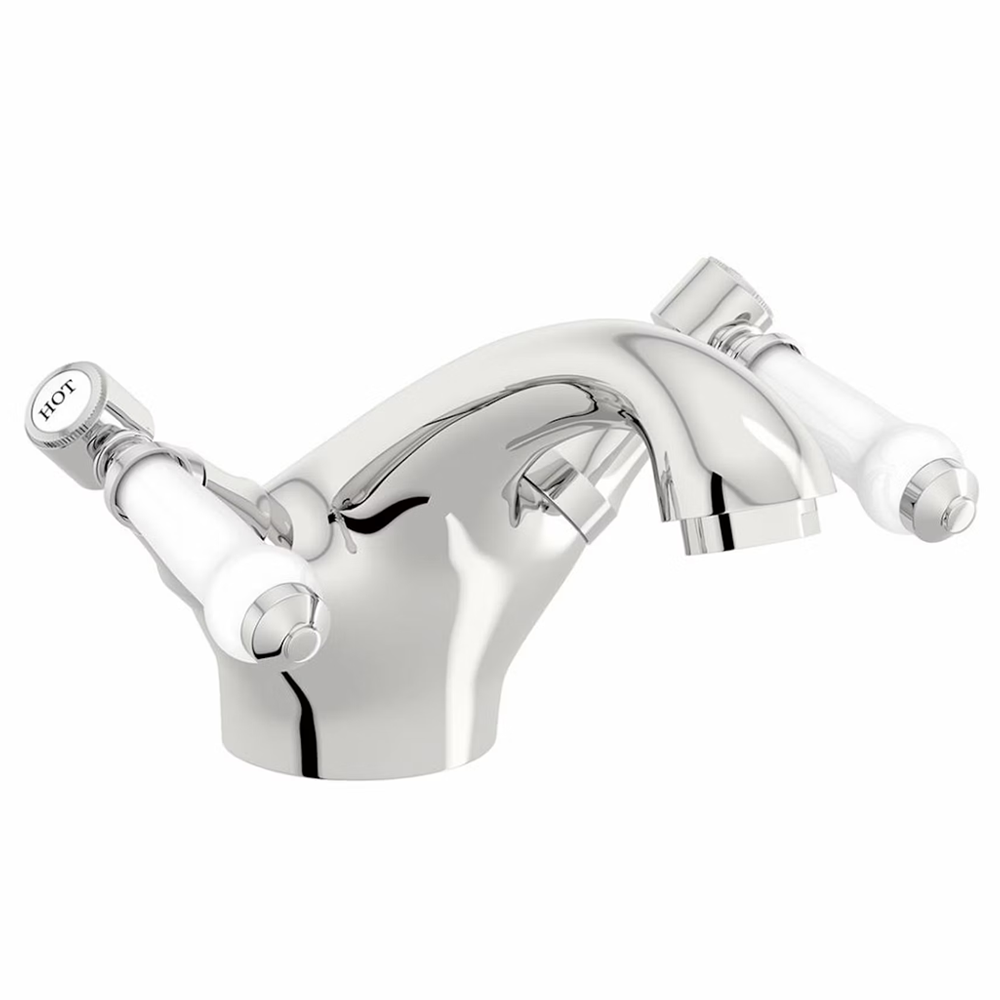 Orchard Winchester Basin Mixer Tap with White Lever Handles – Chrome