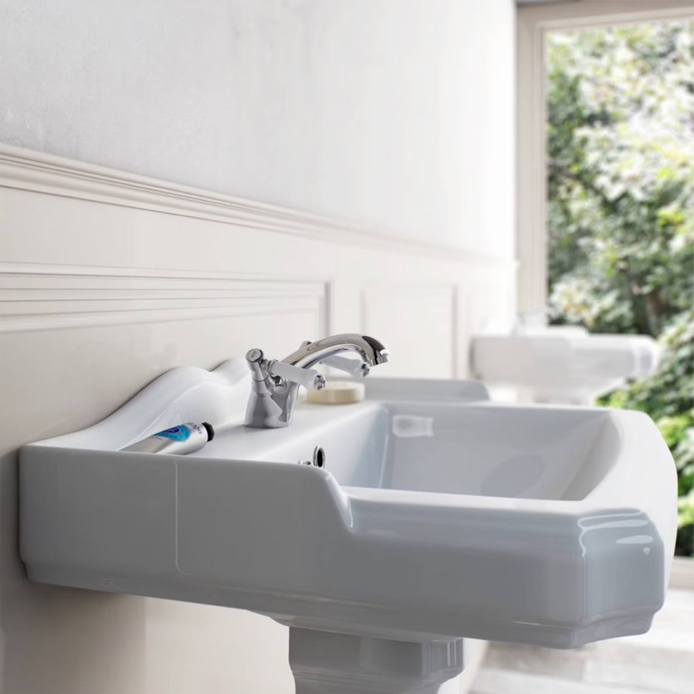 Finish off your vintage-style bathroom with the elegant Winchester Traditional Basin Mixer Tap from Orchard Bathrooms. Made from brass with a chrome finish, this tap blends both luxury and durability to create a timeless style that stands the test of time. The tap features easy-to-grip ceramic look handles, perfect for those with restricted hand movement, and a ceramic disc cartridge that ensures exceptional control over water flow and temperature. The closed spout with angled water flow adds a distinctive touch, while the availability of waste for purchase provides added convenience. The high-quality craftsmanship and traditional design make the Winchester collection truly stunning and an ideal choice for any vintage-style bathroom.