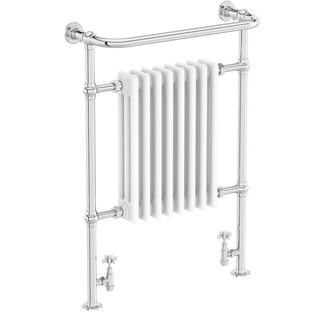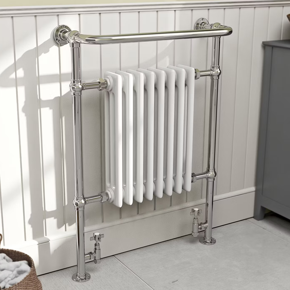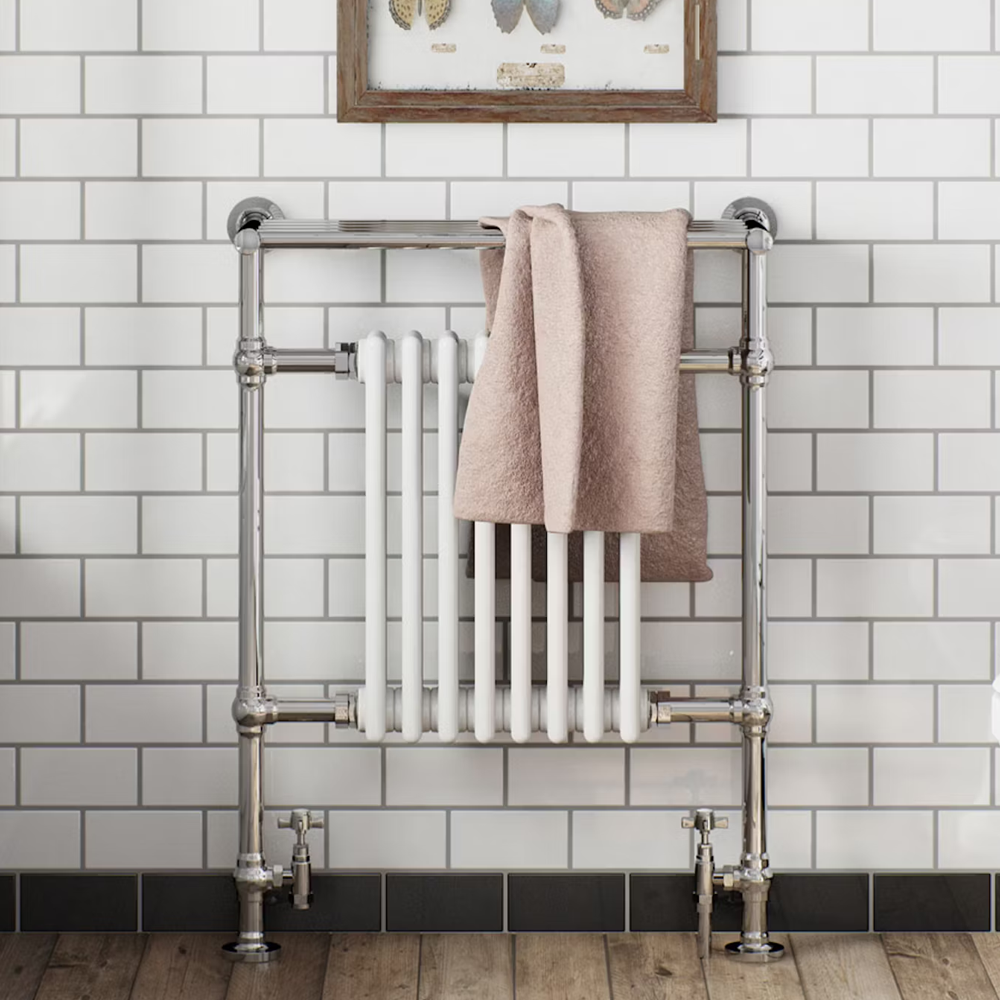 Introducing the Santa Fe Radiator by The Heating Co., a perfect blend of classic elegance and modern functionality. This beautifully designed radiator features a traditional column design with a high-quality polished chrome and enamelled white finish, adding a touch of sophistication to any bathroom.