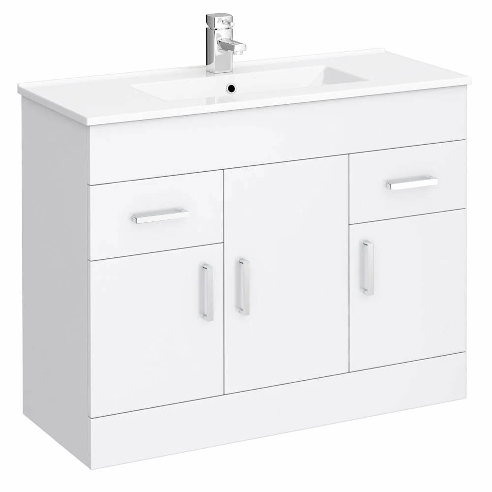 (1) W1000 x D400mm Toreno Gloss White Vanity Unit with Ceramic Basin