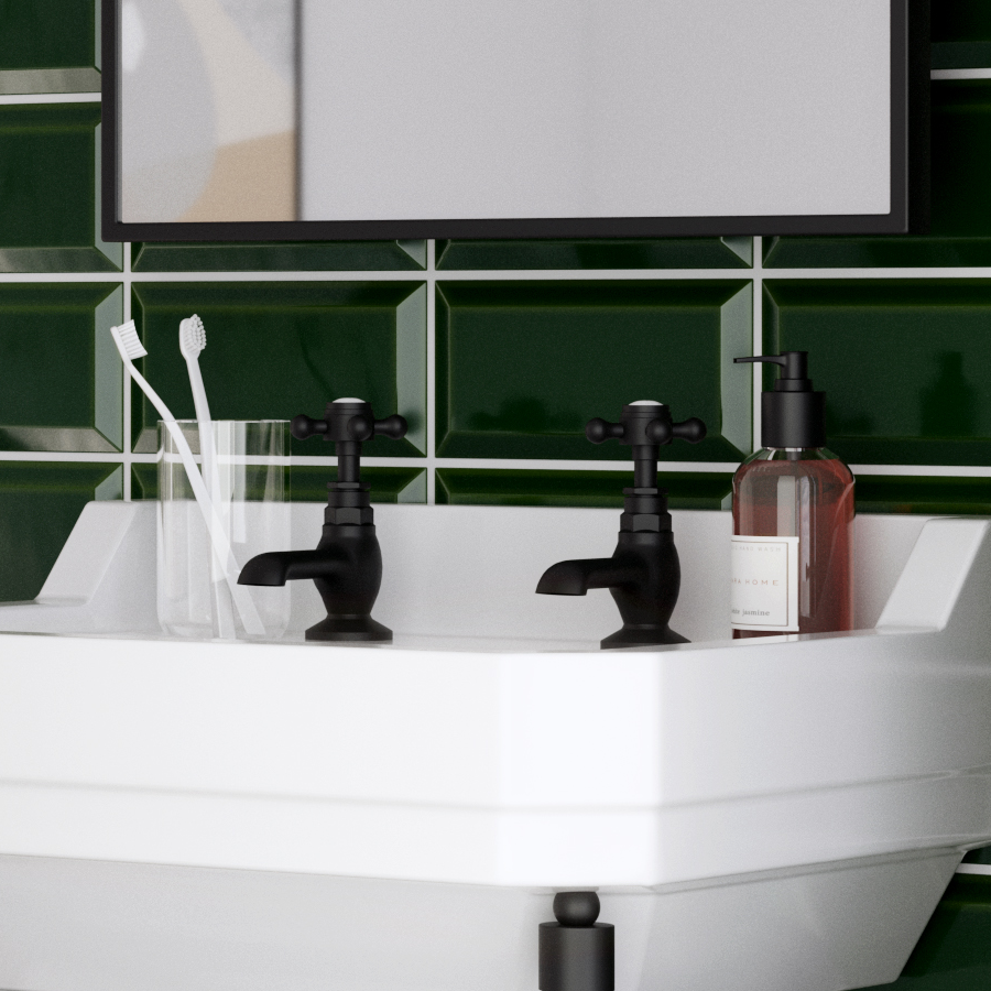 The Trafalgar Traditional Crosshead Pillar Basin Taps in Matt Black are a great choice for those looking to add a touch of elegance to their traditional bathroom decor. These taps feature a classic cross head design that adds a touch of sophistication to your basin. The durable solid brass construction ensures long-lasting performance, while the striking matt black finish adds a touch of sophistication, creating a statement piece that will impress guests and enhance your daily routine.