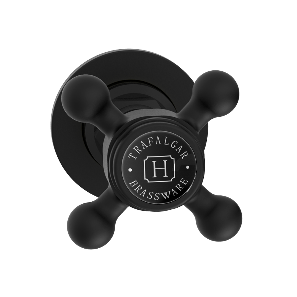 Trafalgar Wall Mounted Bath Spout and Crosshead Stop Taps Matt Black with Black Indices