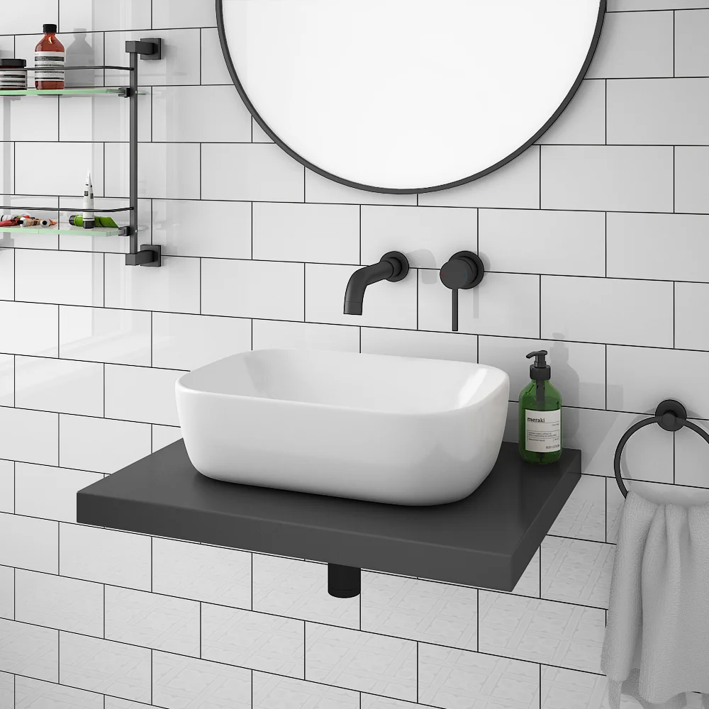 The gloss grey 600mm wide Venice floating basin shelf attaches securely to the wall and features a stunning minimalist slimline design, perfect for maximising space and for creating a stylish boutique feel in your bathroom. Supplied undrilled to allow flexible positioning for your basin and tap. To compliment your shelf be sure to check out our range of attractive countertop basins.