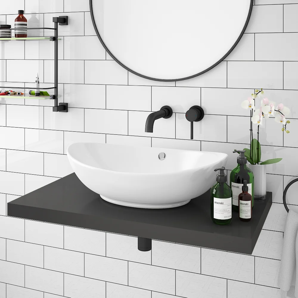 Countertop basin, tap, bottle trap and waste are not included